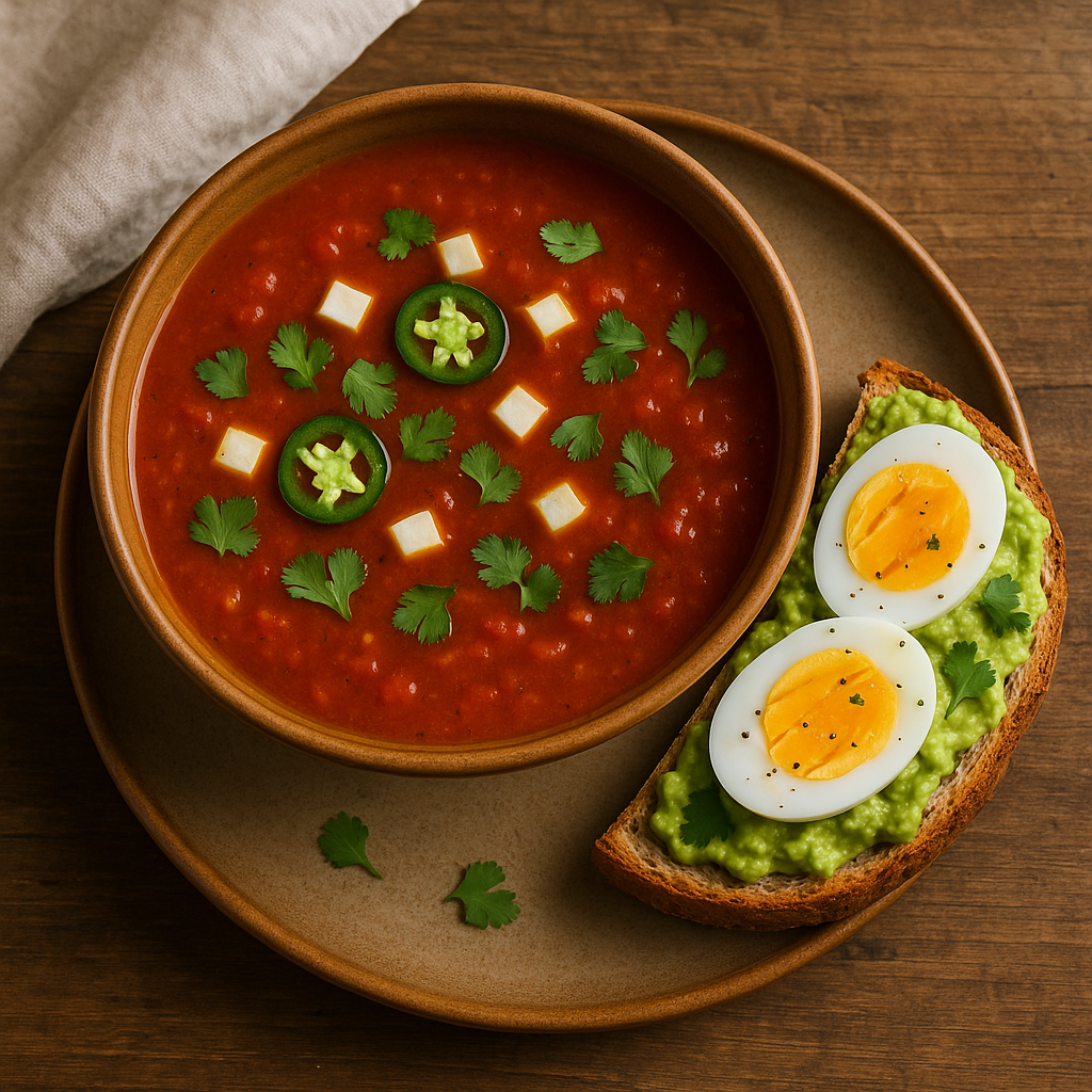 Mexikansk tomatsoppa med ägg- och avokadomacka